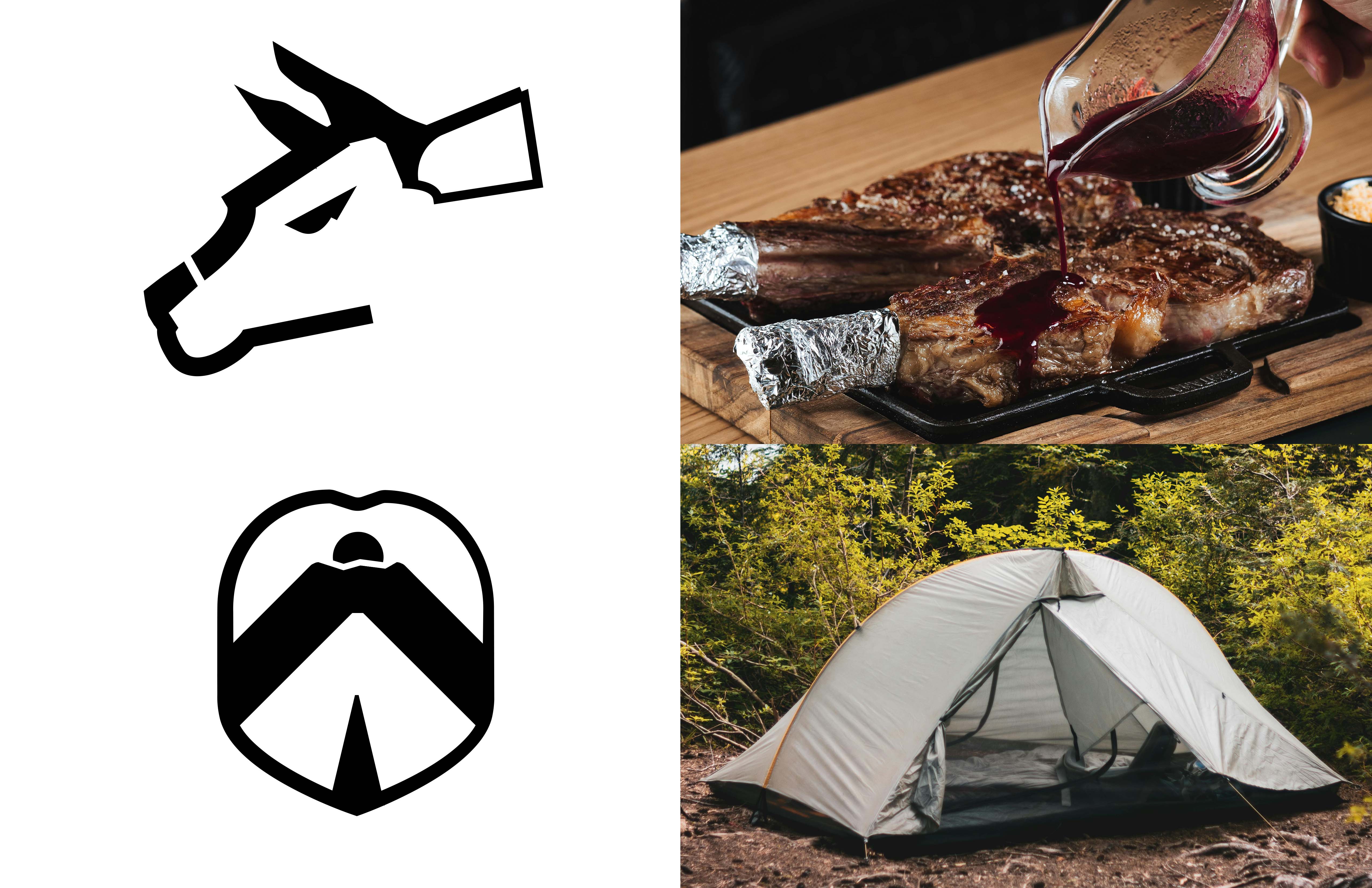 Brand identities for gym apparel, steakhouse, tech company, and camping gear.